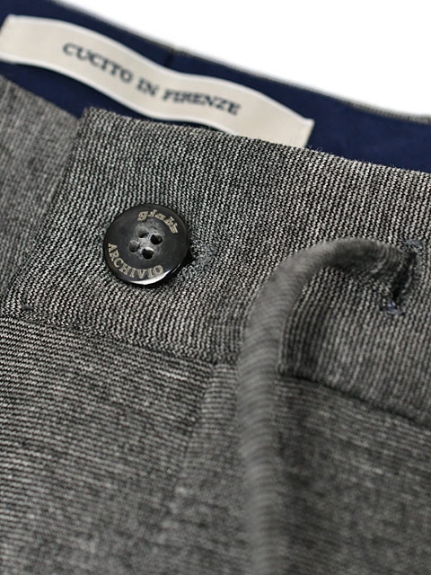 ご紹介は、giabsarichivioの定番である程よく肉厚なジャージー生地を使用しており、しっかりとした伸縮性ながらも戻りのいいキックバックが特徴の一本でございます。