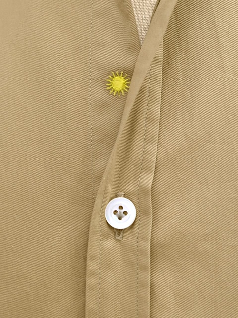第2、第3ボタンの間にブランドアイコンの太陽のマークが付いており チラッと覗く太陽のマークもアクセントとしても大活躍して頂けます!