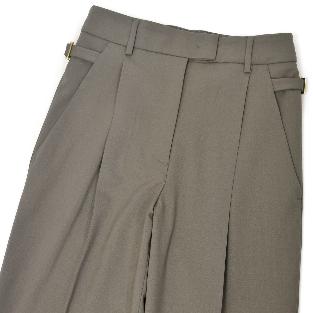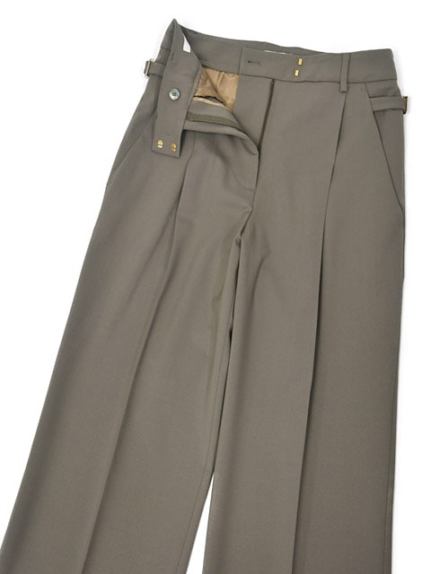 ハイウエストにタックが施されたデザインは、ウエストをスッキリと見せてくれ脚長効果がございます。