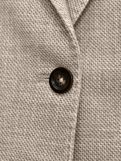スリムフィットモデルで、コンパクトな肩まわり、ウエストにはしっかりとシェイプが入り、女性らしい印象に。