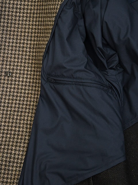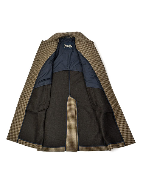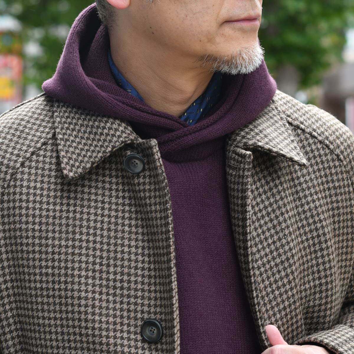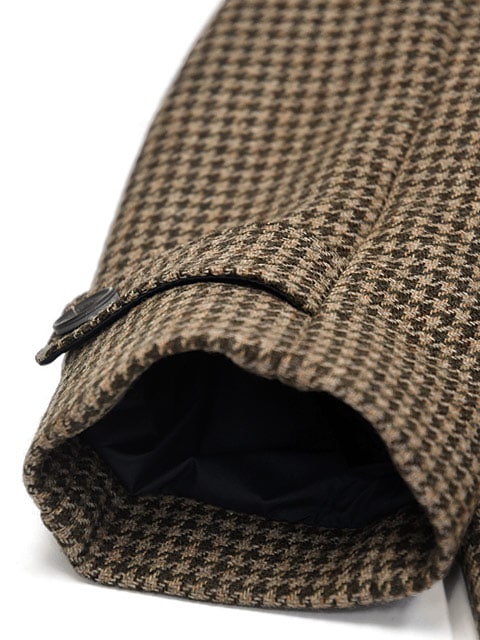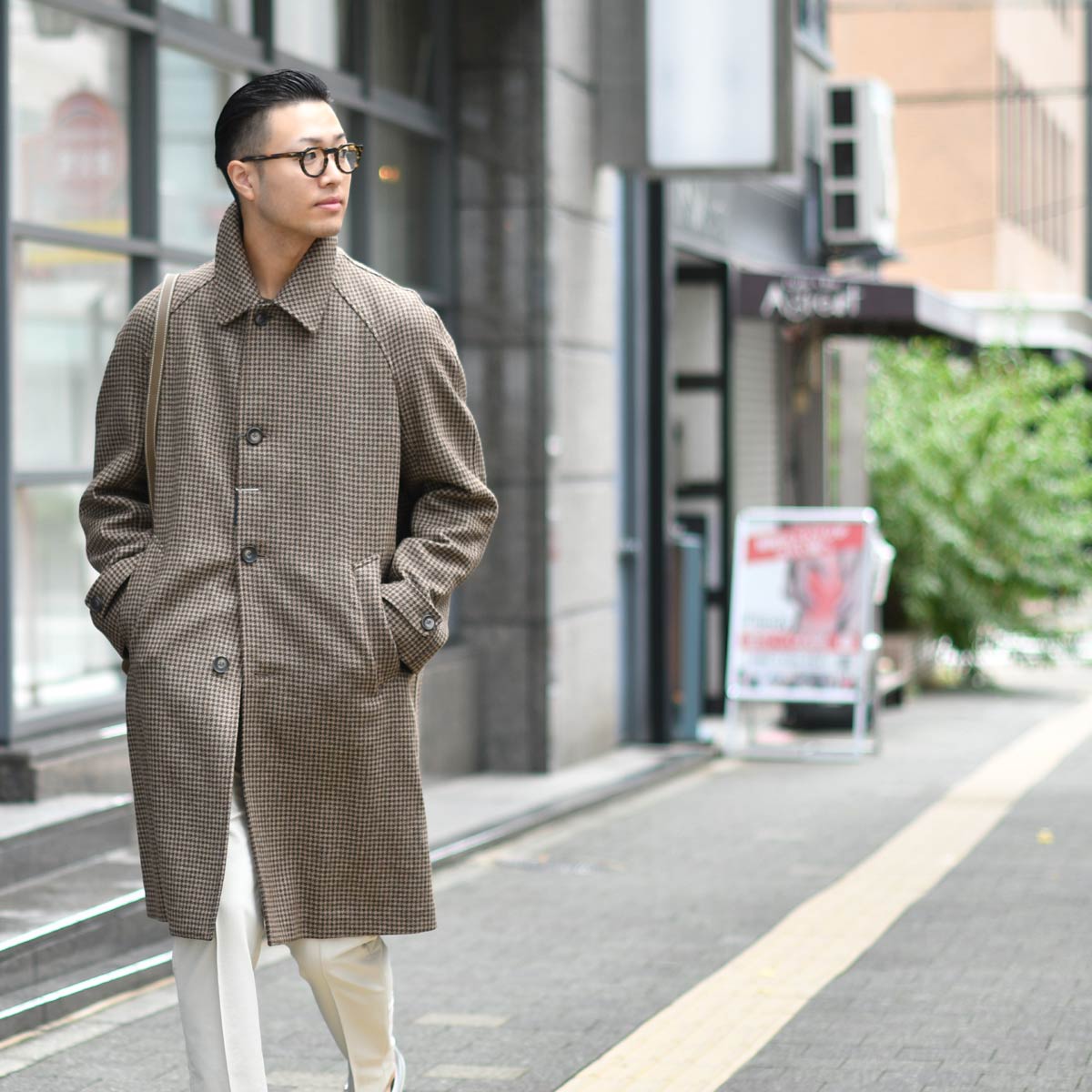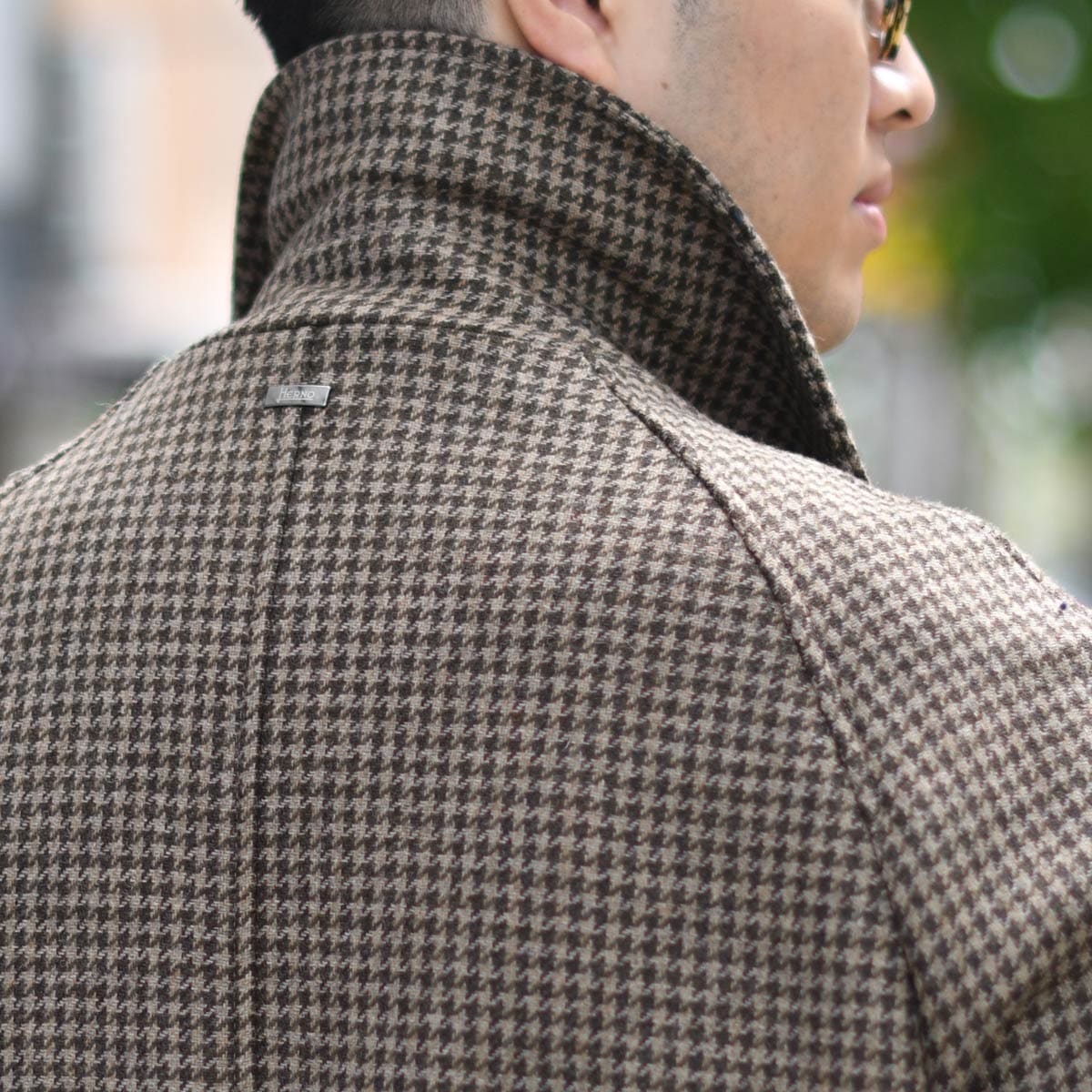 コートの王道ともいえる定番的なデザインながら、今季のブランドコンセプトを踏襲した、ブリティッシュテイストな千鳥柄が特徴。