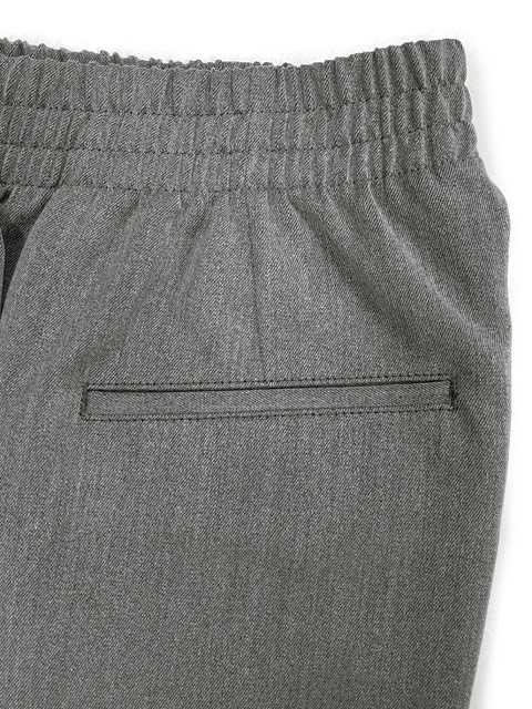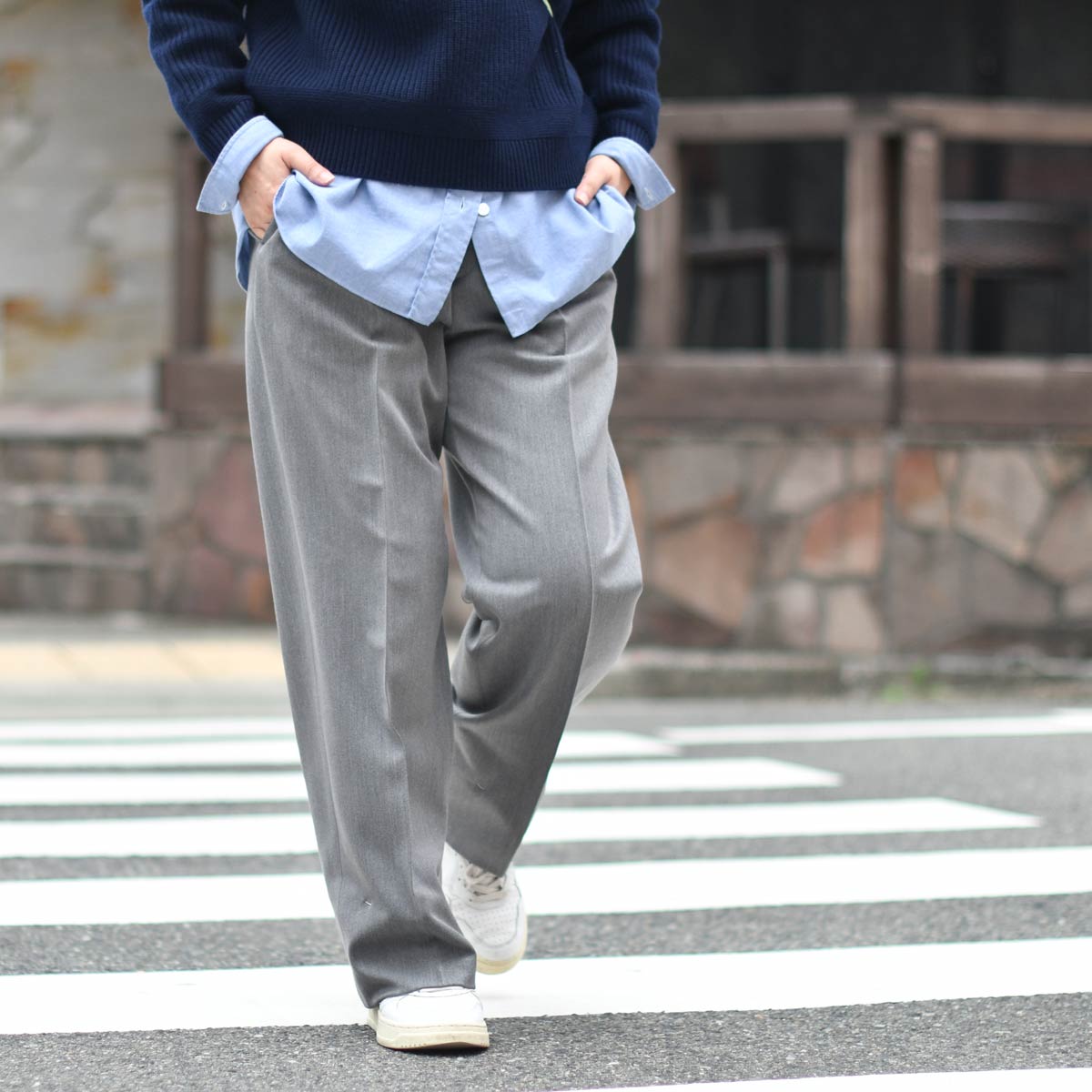 ウール調に仕上げたふくらみのある化繊素材は、しっかりとストレッチが効きしなやかで、リラックス感のある穿き心地ながらエレガントな表情に。
