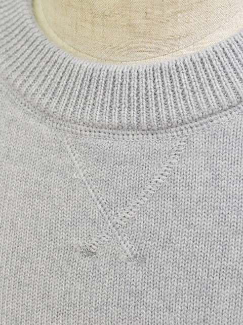 クルーネックの襟元にあるVガゼットやラグランスリーブのディテールは、スポーティーなスウェットのように見せながらも厳選されたウールを使用した高級感ある佇まい。