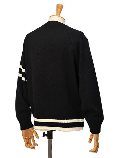 クルーネックの襟元にあるVガゼットやラグランスリーブのディテールは、スポーティーなスウェットのように見せながらも厳選されたウールを使用した高級感ある佇まい。