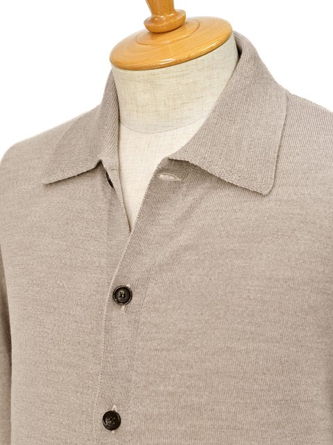 ご紹介は、厳選されたウールを使用したハイゲージの襟付きカーディガンです。