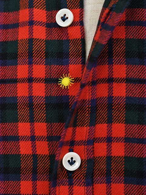 リラックスした心地良い雰囲気からインスピレーションを受けた華やかなカラーや柄がブランドを表現したコレクションを展開。第2、第3ボタンの間にブランドアイコンの太陽のマークが付いておりチラッと覗く太陽のマークもアクセントとしてお楽しみ頂けます。