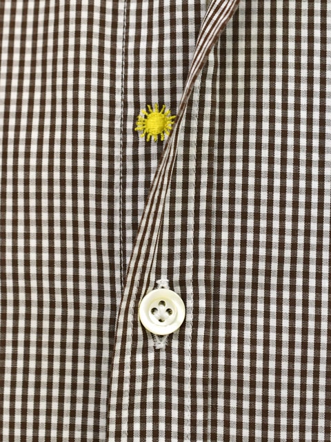 リラックスした心地良い雰囲気からインスピレーションを受けた華やかなカラーや柄がブランドを表現したコレクションを展開。第2、第3ボタンの間にブランドアイコンの太陽のマークが付いておりチラッと覗く太陽のマークもアクセントとしてお楽しみ頂けます。
