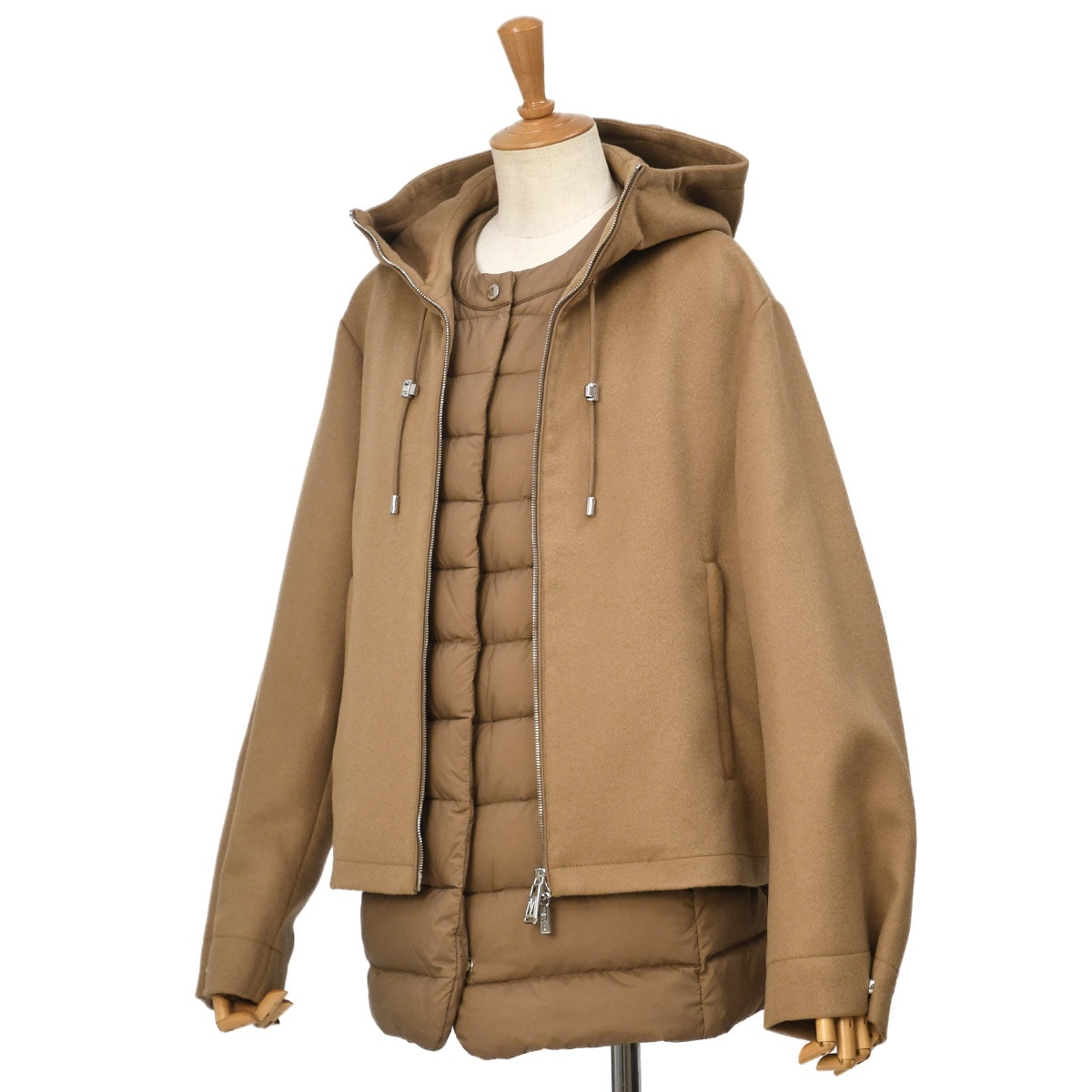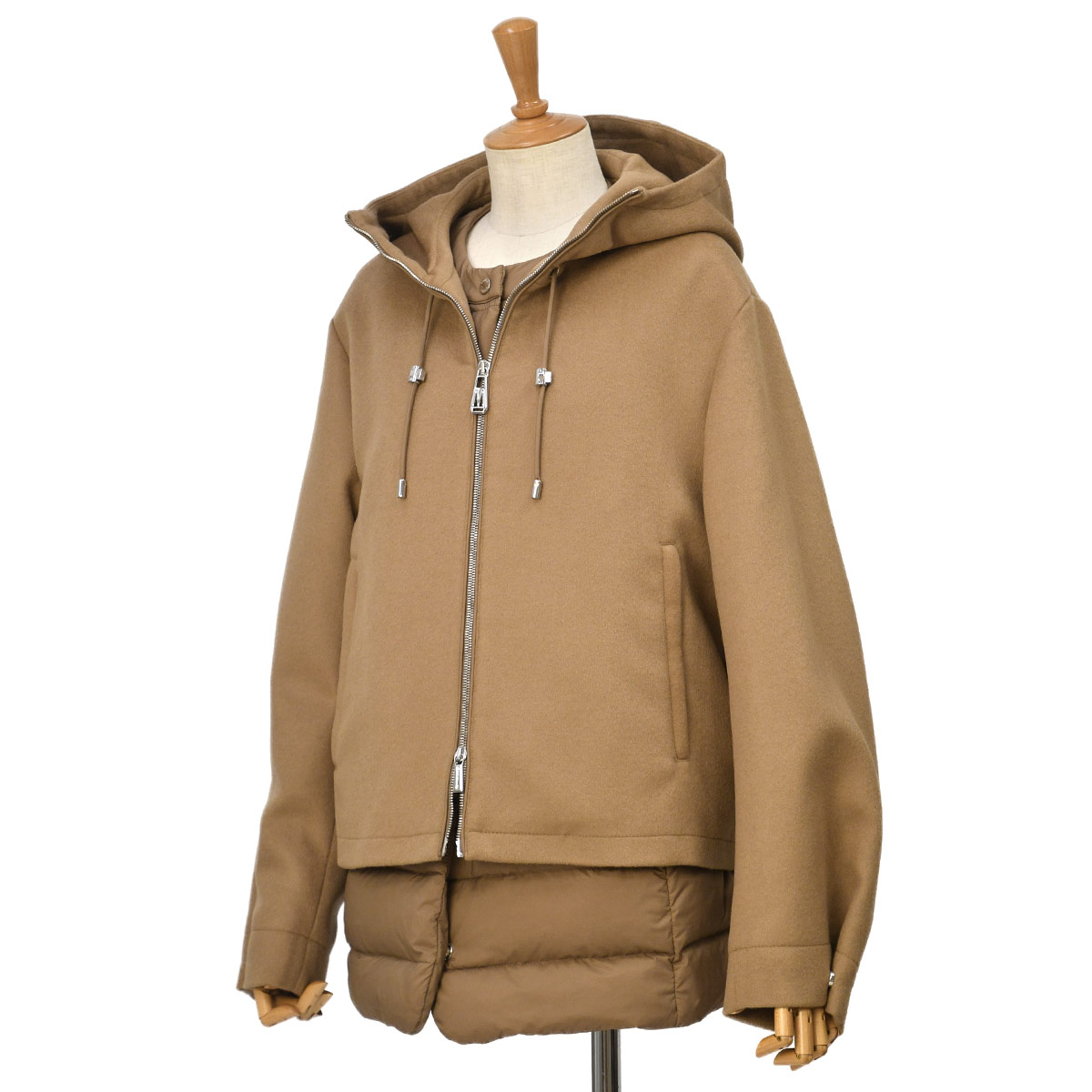 ウール90% カシミヤ10% 裏地:レーヨン100% インナー:ナイロン95% ポリウレタン5% インナー裏地:ナイロン100% インナー充填物:ダウン95% フェザー5% |
