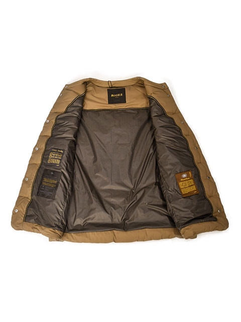 VERONAにて、2005秋冬よりMooRER【ムーレー】をスタート。 " 大人 " が着るアウターブランドとして立ち上げられた同ブランド、最高のフィルパワーを誇るシベリア産の最高級ホワイトグースダウンを使用したダウンコレクションがメインとなります。 表地には、耐久性、摩耗性、撥水性に富む高密度の織のテクニカル素材を使用し、スナップボタンやファスナー、ホーン釦などには全て特注品を使用。 リブには、フィット性の高いウール素材を使用し、外気の侵入を完全遮断し、実用性とエレガントさを兼ね備えた大人のダウンアウターのコレクションとなっています。