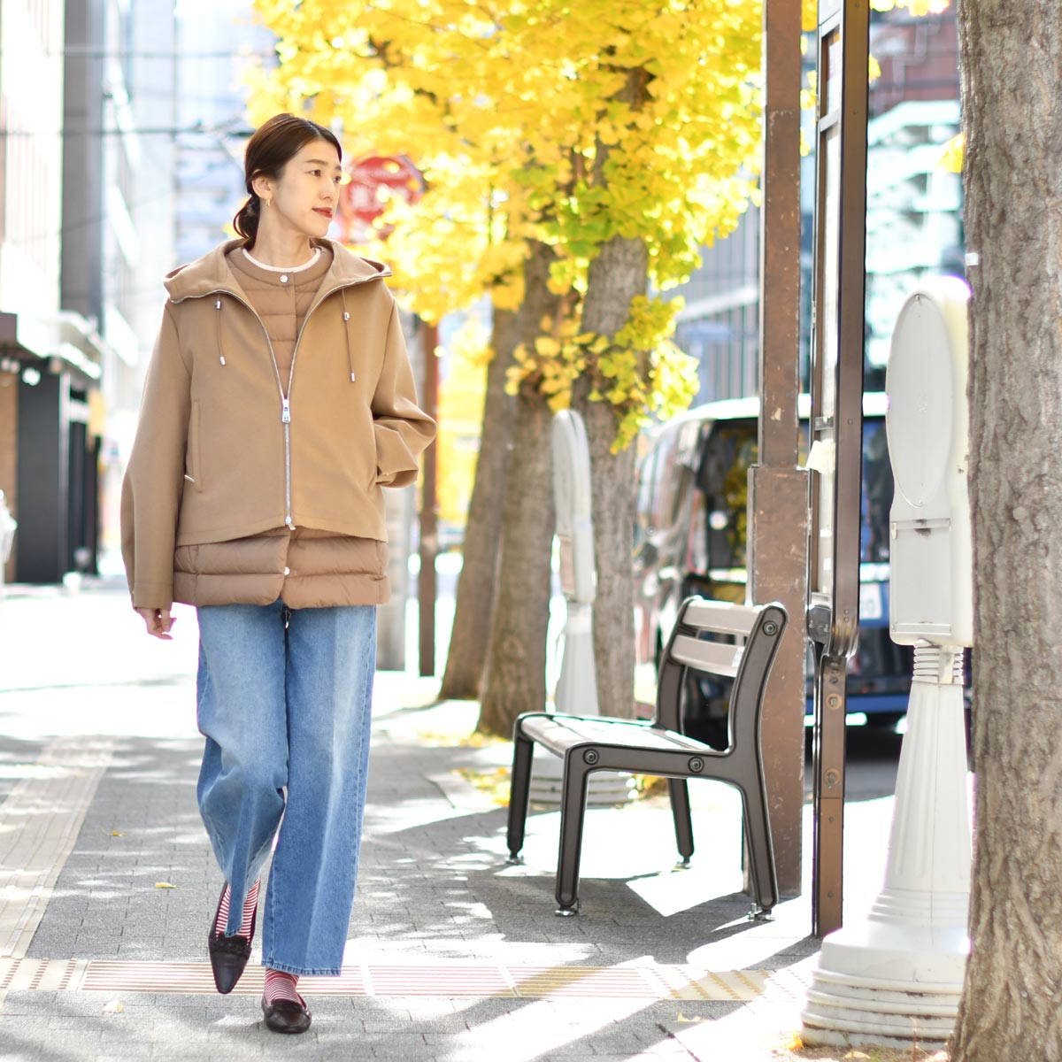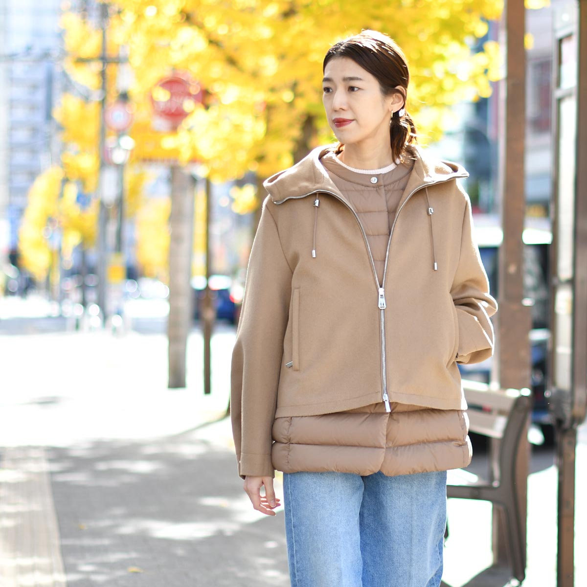 デザイン性に優れたショートコートのインナーとして、ダウンベストを着用するのはもちろん