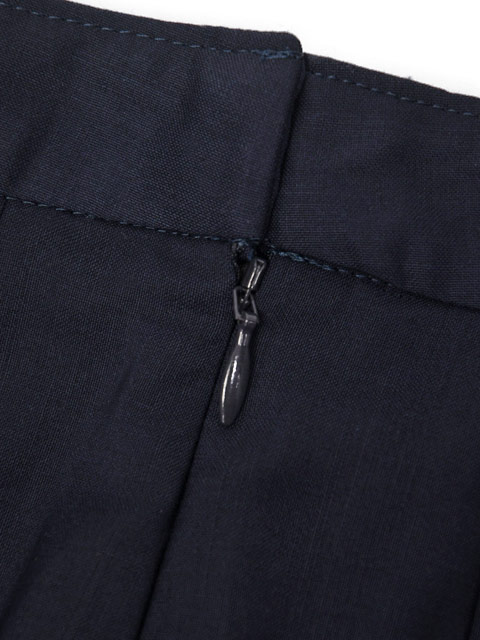 ウエスト~ヒップはすっきりとプリーツを折りたたみ、ヒップ下から上品に広がるシルエット。