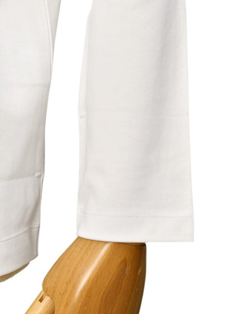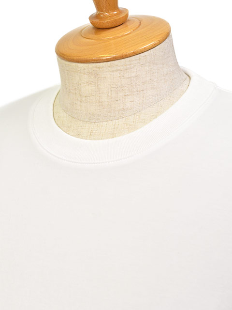 ピマコットンをハイゲージの編み機で編むことで透けづらく、適度なハリがありながら柔らかな肌ざわりを実現。ワークフロムホームやオンラインミーティングの機会が増えた昨今、リラックスして着用できつつカジュアルすぎないカットソーへの要望から、素材を吟味しフィットに幾度も改良を重ねて出来上がったこだわりのTシャツです。