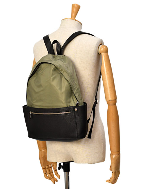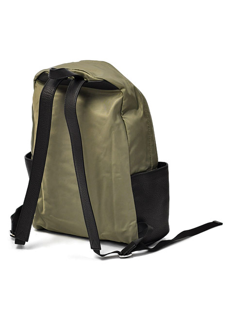 滑らかな肌触りのナイロン素材とレザー使いのコンビアイテム。