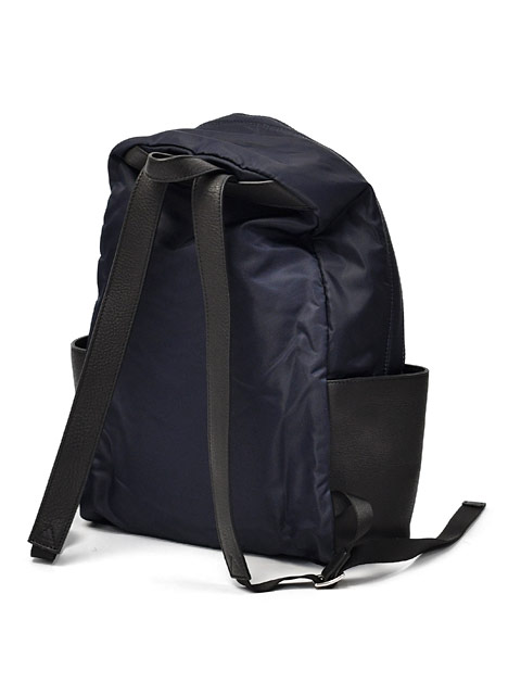 滑らかな肌触りのナイロン素材とレザー使いのコンビアイテム。