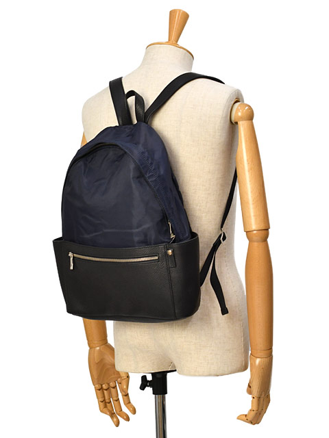 ボディ半分をレザーで大胆に包み込んだ、立体感のある見た目が特徴です。 再度フロントにポケットを配しており、サイドのポケットは500mlほどのペットボトルが収納可能となっております。 ブランドロゴにはシルバー925のスタッズを使用し、さりげない部分にも拘った大人に相応しいアイテムと言えるでしょう。 スポーティなデニムスタイルから、ドレッシーなジャケットスタイルまで幅広くご活用いただける仕様となっております。