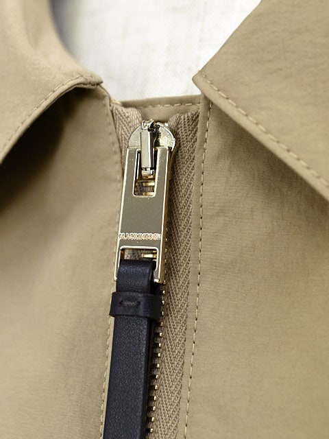 レザーのファスナー引き手もアクセントの上品なジップアップブルゾン。